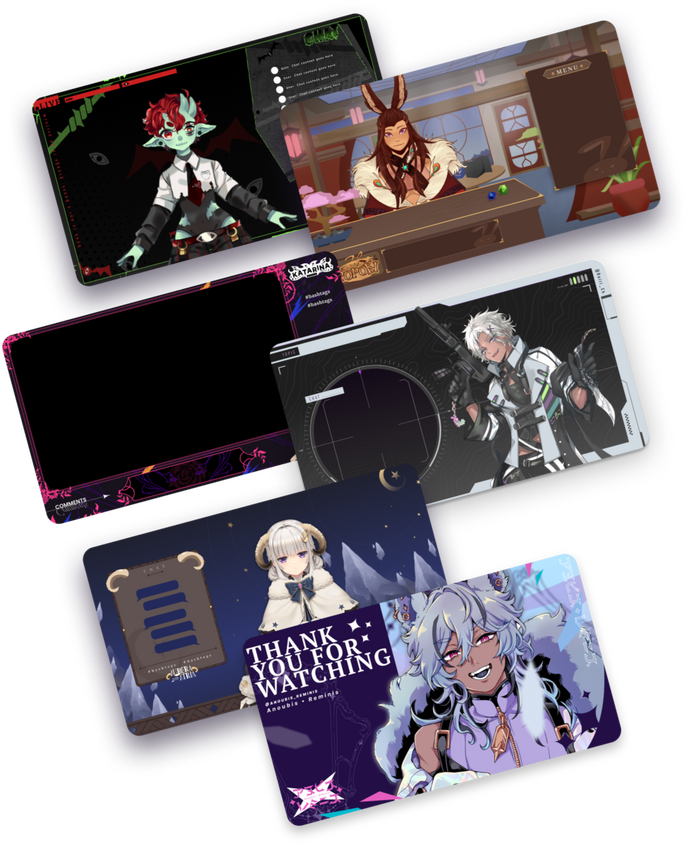 All products will be provided in high quality png and are ready for import inside OBS. An additional 50% fee would be requested if the client wants to have a copy of the organized work files (figma).